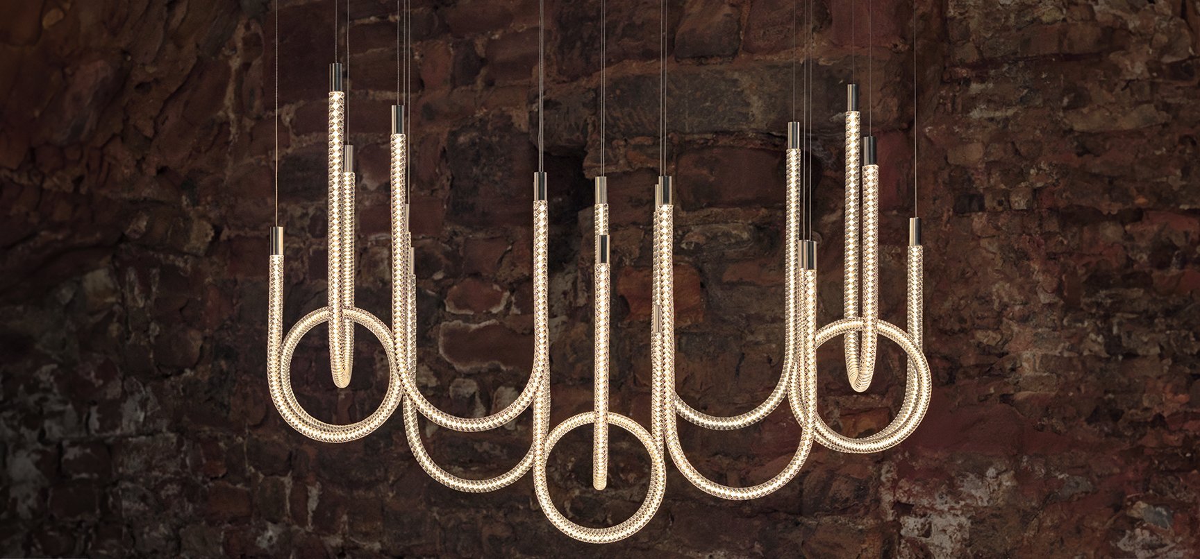彼女の発想を形にするため、デザイナーはループ型とU字型の2つの形からなるランプ・コレクションを考案。エレガントなカーブを描くこの2つの形から、ペンダントライト、テーブルライト、ウォールライト、シャンデリア(調光機能付き)などの10モデルが誕生しました。