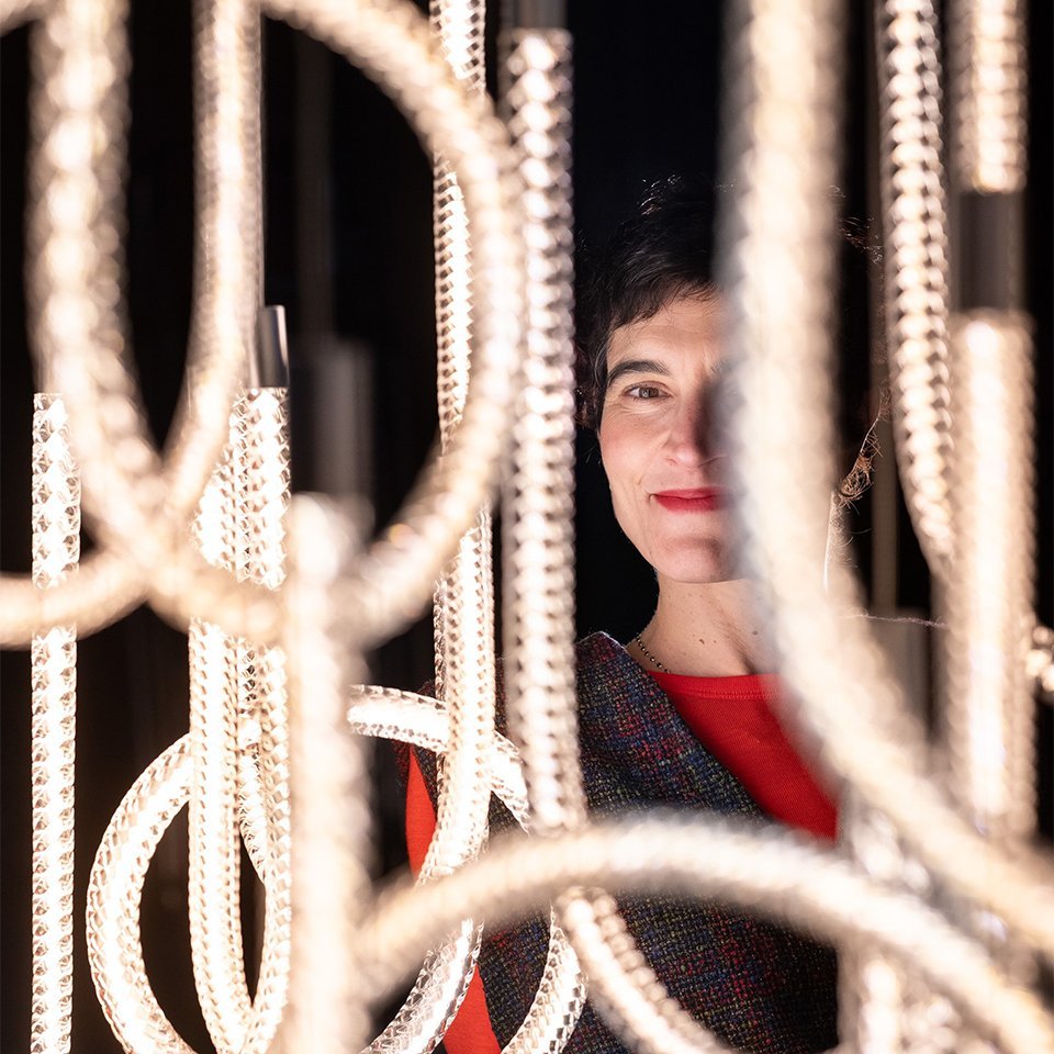 19世紀中頃からシャンデリアのスペシャリストであり続けるサンルイ。伝統的なシャンデリアから、新しいプロダクトへと進化させるためにサンルイが選んだコラボレーションの相手は、いたずら好きで好奇心旺盛なステファニア・ディ・ペトリロでした。彼女は伝統的なシャンデリアのアームからインスピレーションを得て、〈トルサード〉コレクションの光を生み出したのです。